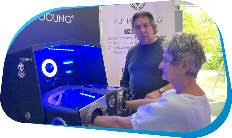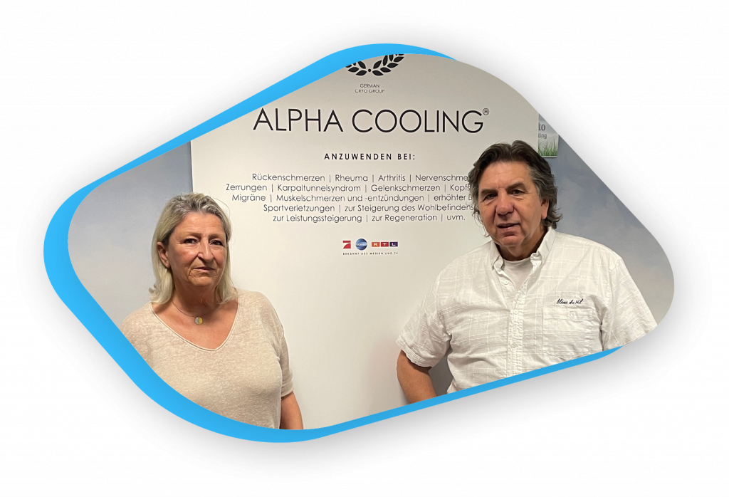 „Ich litt selbst seit geraumer Zeit unter Schmerzen in beiden Daumensattelgelenken, meine Frau Sabina unter arthrosebedingten Knieschmerzen beim Treppensteigen. Außerdem hatte sie extrem kälteempfindliche Hände – allein das Waschen mit kaltem Wasser bereitete ihr bereits Schmerzen. Nach nur drei Anwendungen mit Alpha Cooling waren all ihre Beschwerden vollständig verschwunden. Auch ich habe bereits nach nur zwei Anwendungen deutliche Verbesserungen gespürt, nach ein paar weiteren Sitzungen waren auch bei mir diese Beschwerden und Schmerzen weg. Da wusste ich – diesen Service und diese Kältekraft, möchte ich all unseren Freunden, Bekannten und Kunden anbieten – ein Geschenk für ein schmerzbefreites Leben.“