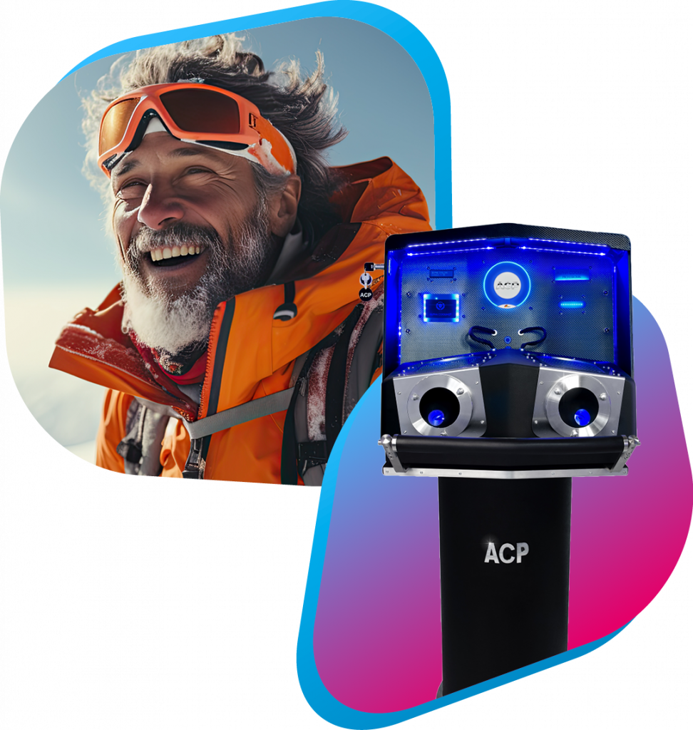 Lege Deine Hände unter Führung der Kälteexperten für mehrere Kälte-Zyklen in die vorgesehenen Öffnungen des ACP-Geräts. Die Anwendung erfolgt unter Aufsicht und mit fachgerechter Anweisung und Kontrolle.